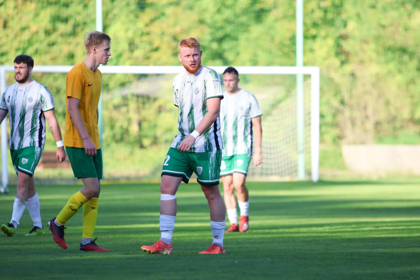 Slovan začal skvěle. Už ve 2. minutě otevřel skóre Jakub Hampl, když po aktivním presinku dorazil domácího brankáře, jehož odkop se šťastně odrazil od Hampla přímo do sítě – 0:1. V 10. minutě zvýšil Radim Jurča a hosté rychle vedli 0:2. Domácí však dokázali reagovat a po dvou brankách ještě do poločasu vyrovnali. Druhý jejich zásah padl z přímého kopu, který následoval po vyloučení Lukáše Poštulky. Vzápětí navíc přišla další komplikace – červenou kartu dostal brankář Radek Szarowski za hru rukou mimo vápno. Do brány tak musel Martin Mišovic, který se vyšvihl k výbornému výkonu a měl lví podíl na tom, že Slovan ve zbytku utkání neinkasoval.